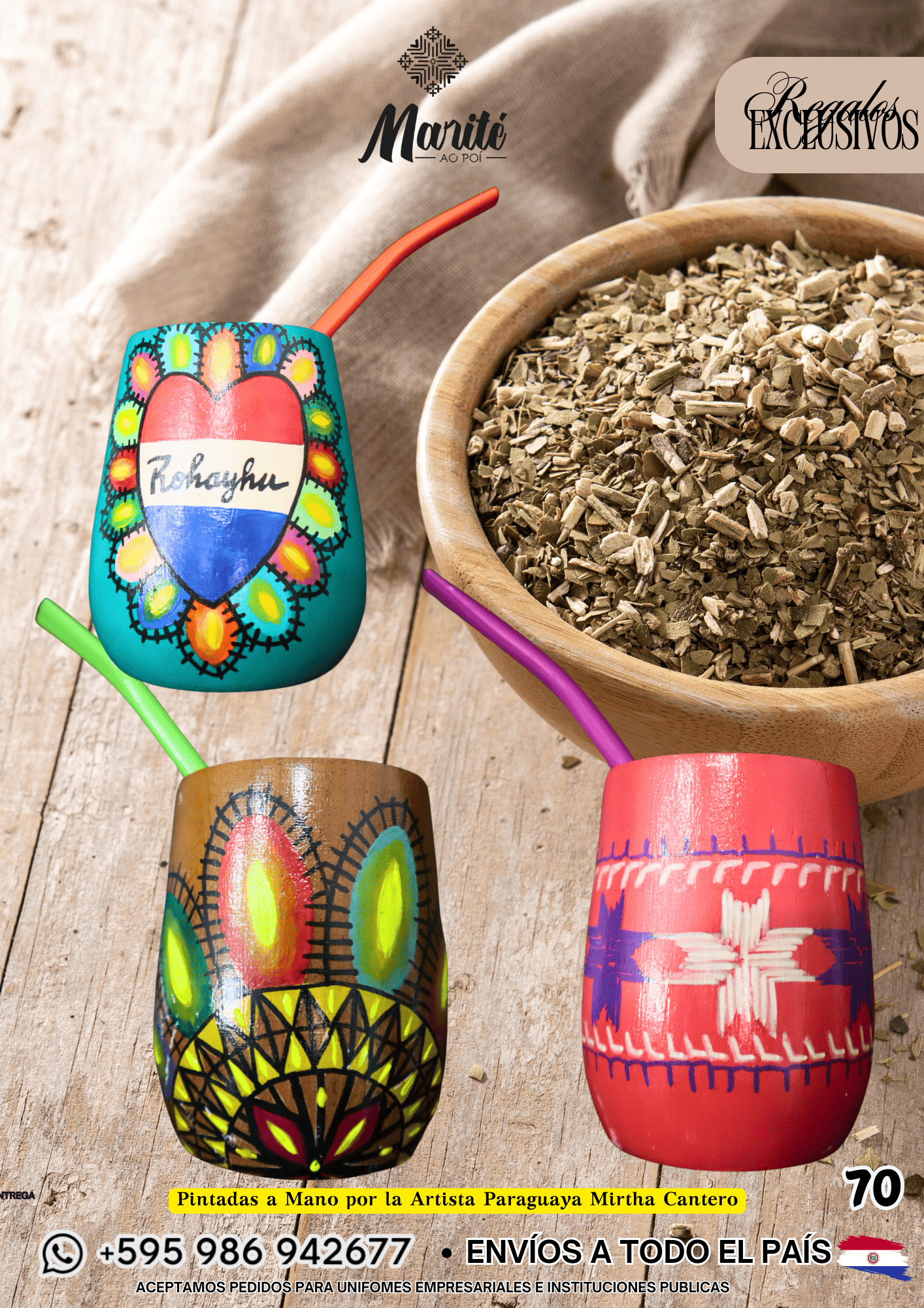 Pintadas a Mano por la Artista Paraguaya Mirtha Cantero